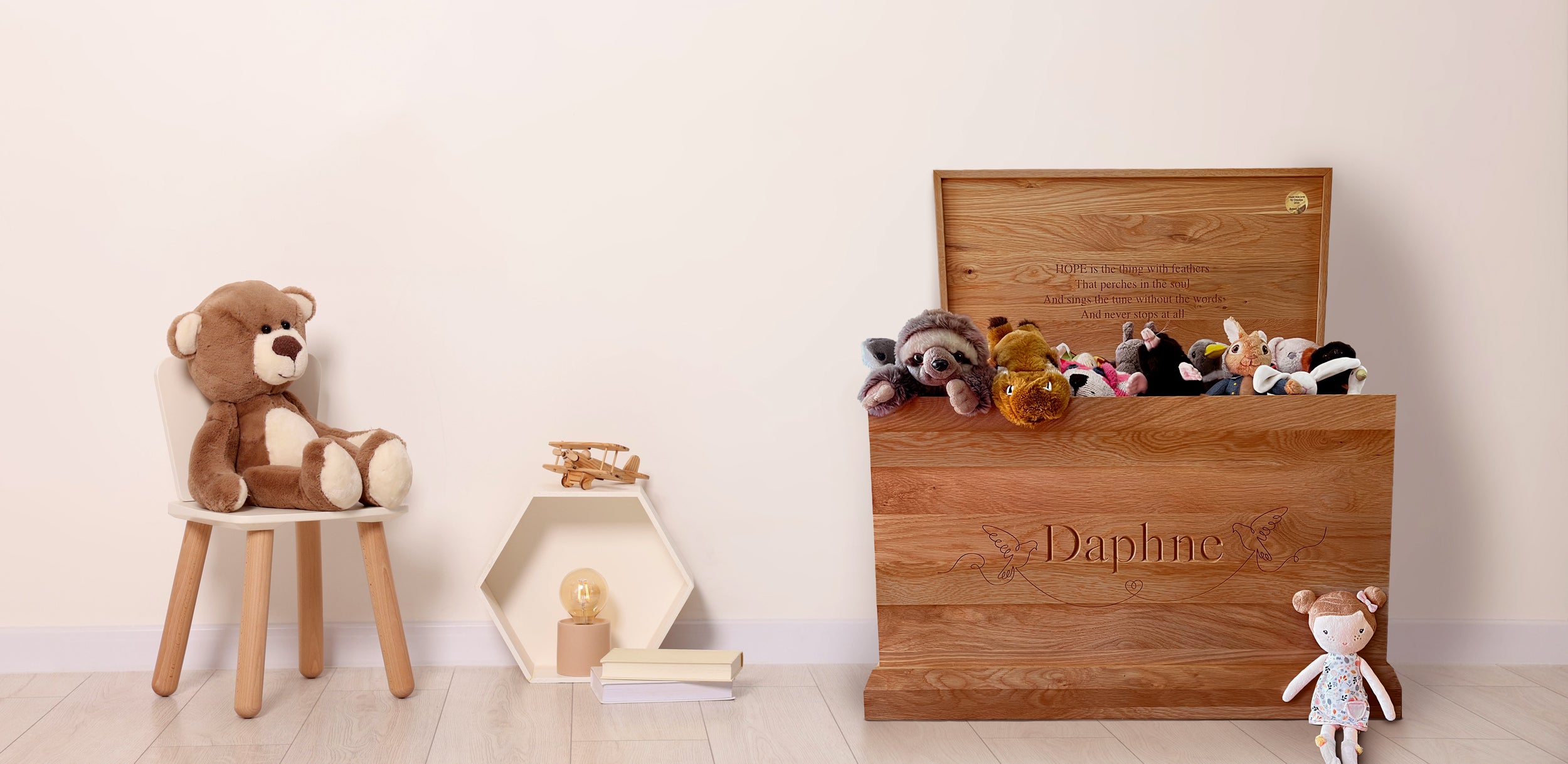 Personalise your oak toy box to create a unique family heirloom. Explore your options…